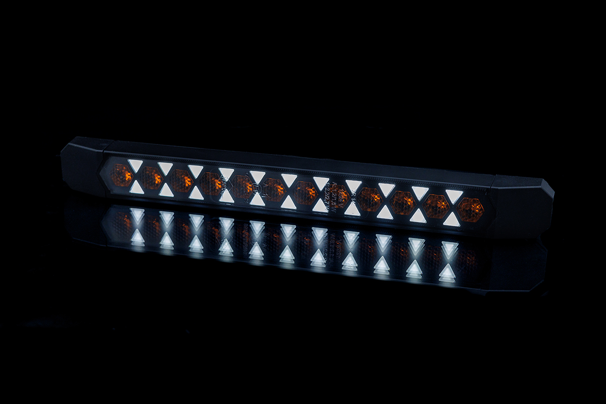 The LIZARD LZD 3143 front multifunction lamp is a modern, compact LED solution that combines striking design with high functionality and reliability. The use of 34 high-performance LED diodes ensures excellent visibility, while the dynamic turn indicator provides clear and modern direction signaling. The lamp is an ideal choice for a wide range of vehicles – from semi-trailers and trailers, through construction machinery, to light electric vehicles and specialized vehicles.