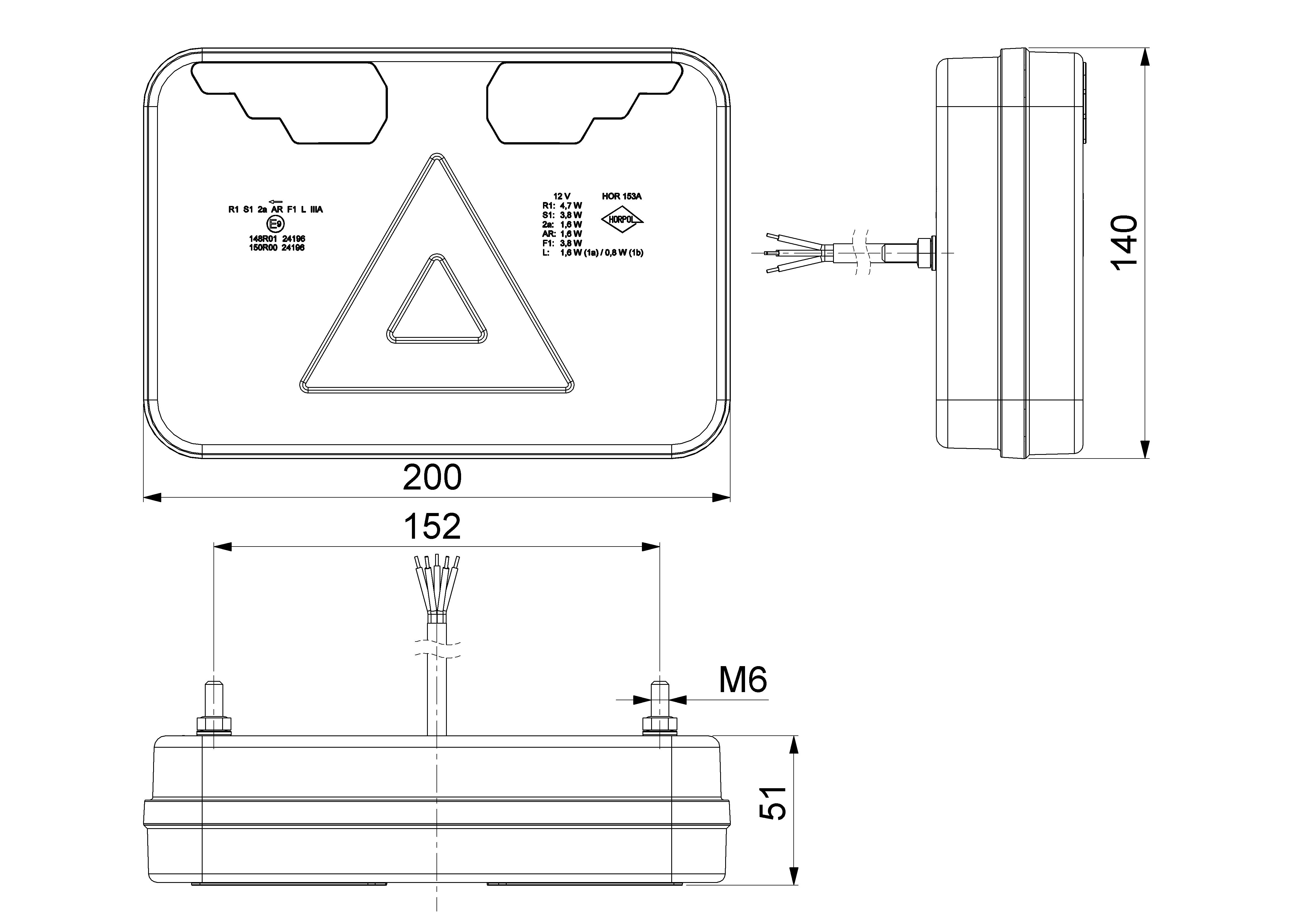 The lamp is intended for right-side vehicle mounting and operates on a 12 V electrical system. Using advanced LED technology integrates all key lighting functions into a single, compact module, simplifying vehicle wiring design and enhancing overall functionality.