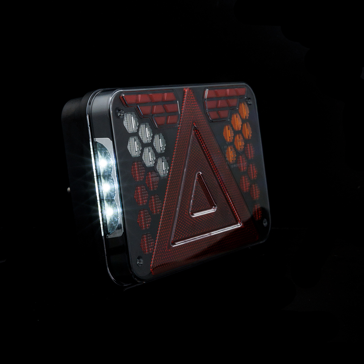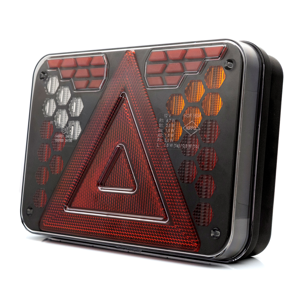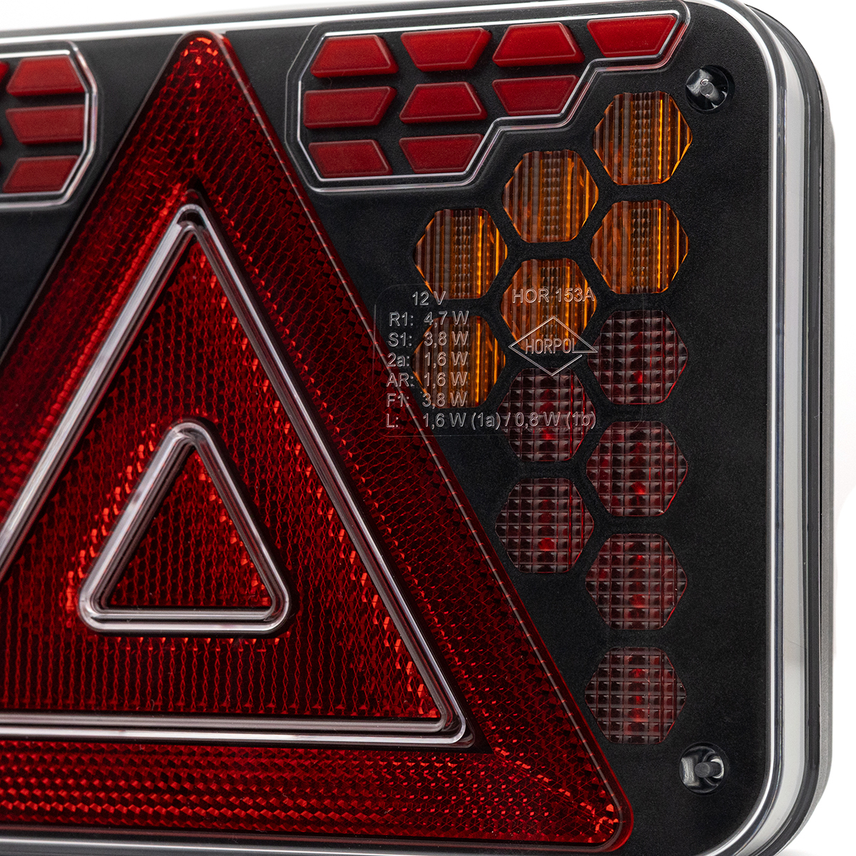 HORUS LZD 3216 is a high-performance LED rear multifunction light designed for automotive trailers, agricultural and special vehicles. It has been engineered with compact dimensions and maximum durability in mind. The lamp construction is based on precisely shaped light modules that create a cohesive and striking illumination effect against the robust housing. The entire unit is protected by a durable, transparent polycarbonate lens that resists mechanical damage and harsh working environments.