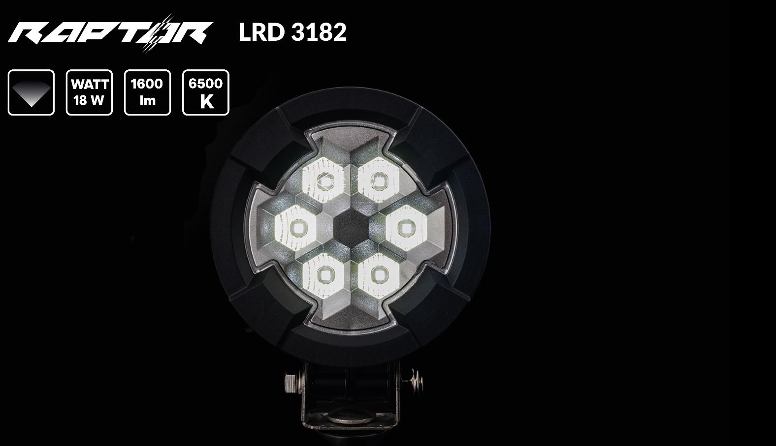 The RAPTOR LRD 3182 work lamp is a reliable and modern lighting solution created for demanding users. With 6 LED diodes and a total power of 18 W, it produces a bright light output of 1600 lm at 6500 K, ensuring clear and comfortable visibility even in complete darkness.