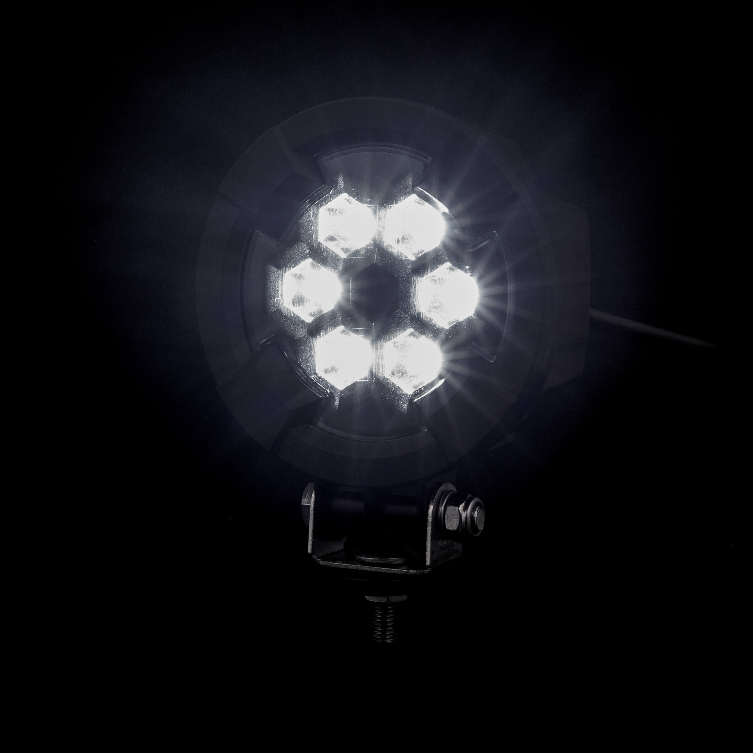 The LRD 3187 RAPTOR is a reliable light source designed for field work where efficiency, durability, and safety are essential. Equipped with 6 high-performance LED diodes with a power of 18 W, it generates a 1600 lm light output in a cool 6500 K colour temperature, providing bright and comfortable illumination of the work area after dark. The lamp’s round design with a black grille ensures a focused light beam that effectively illuminates the working space while minimizing the risk of glare for the operator. The adjustable bracket allows precise setting of the light angle depending on the needs and nature of the tasks being performed.